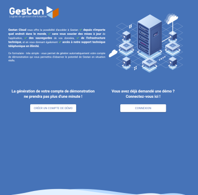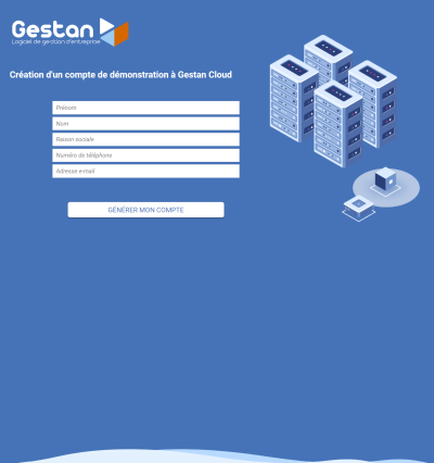 Cette page documente la procédure de gestion automatique d'ouverture des comptes de démo cloud, accessible depuis le 08/10/2023 sur demo-cloud.gestan.fr. Les bases de démo cloud sont sur le serveur 6.