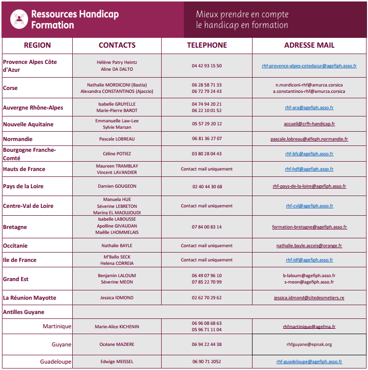 Réseau France Métropolitaine et DOM-TOM RHF (Ressources Handicap Formation - PDF téléchargeable)