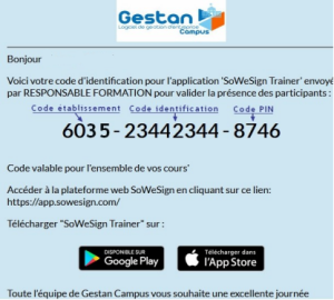 A réception de ces codes , accédez au site à l’adresse mentionnée ou téléchargez l’application SoWeSign Trainer et validez votre accès :