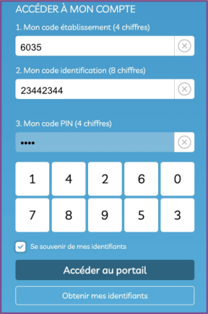 TIP : normalement seul le code PIN a besoin être saisi, les autres étant déjà renseignés automatiquement à la première connexion.