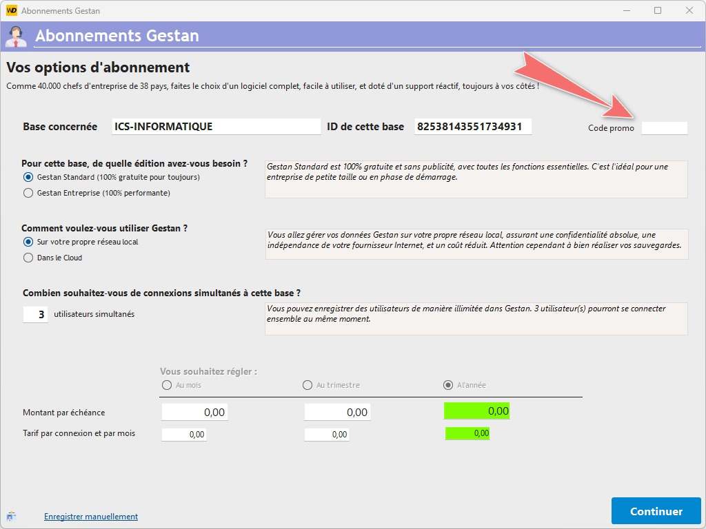 Ce code va autoriser le fonctionnement de Gestan en mode entreprise sans nécessité de licence, jusqu'à sa date d'expiration.