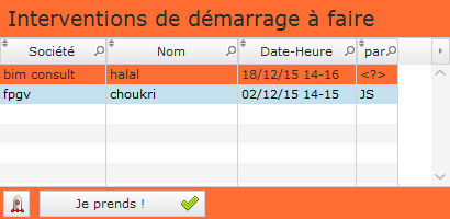 Il suffit de cliquer sur le bouton “Je prend” pour indiquer que c'est vous qui allez traiter l'intervention de démarrage.