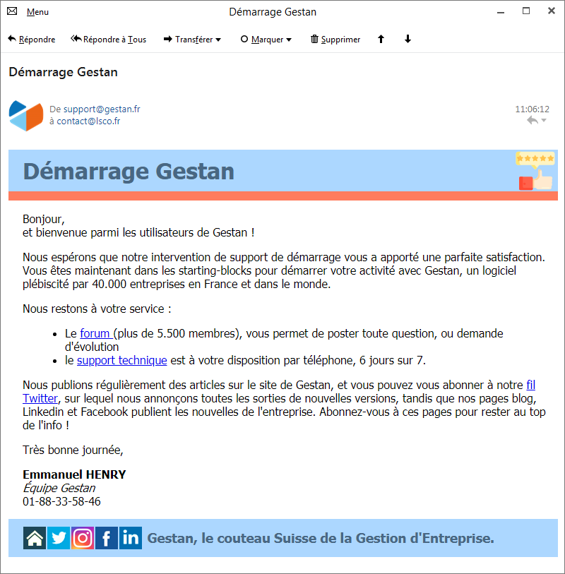 Message automatique envoyé au client à la fin de l'inter de démarrage