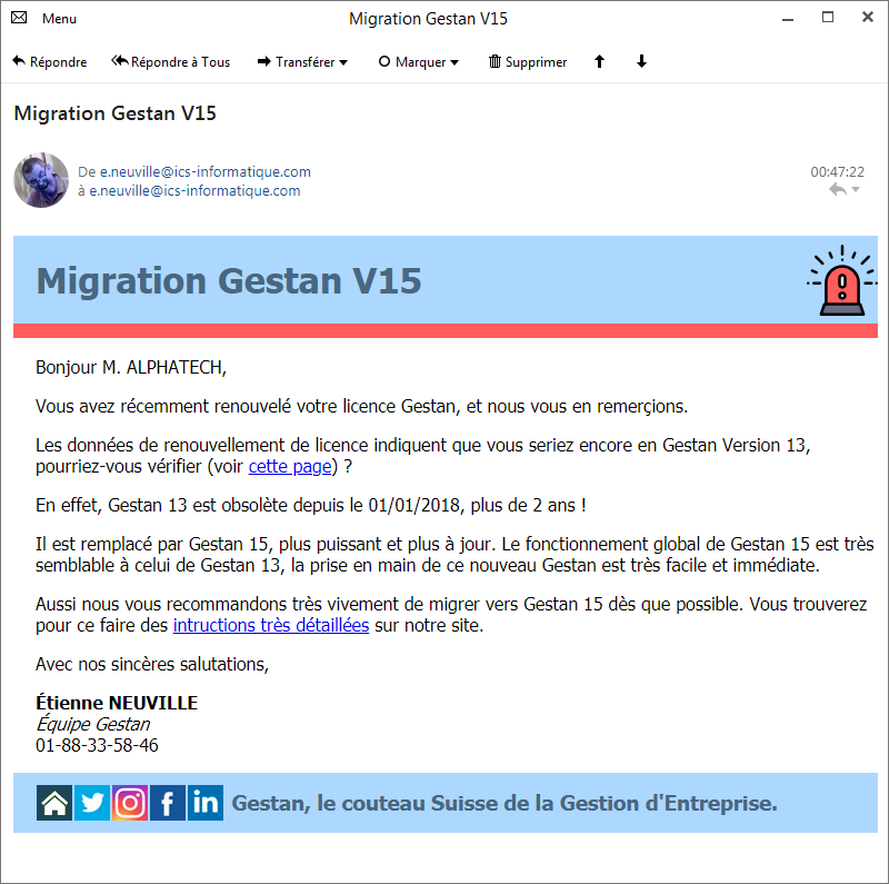 Migration : envoie le mail “Migration” à ceux qui sont encore en version 13 !! (depuis la date de dernier traitement jusqu'à la date de la veille)