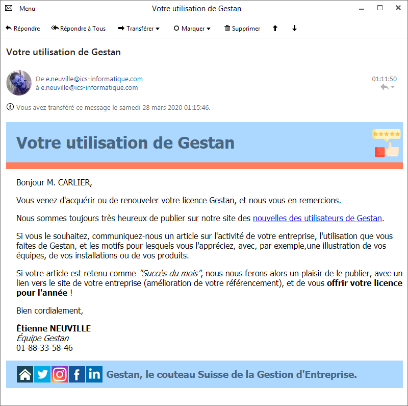 Sucess st : envoie le mail “Success Story” à tous ceux qui viennent d'acquérir une licence (depuis la date de dernier traitement jusqu'à la date de la veille)