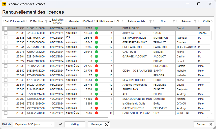 Si l'utilisateur a renouvelé sa licence, la machine est en vert, en rouge dans le cas contraire.