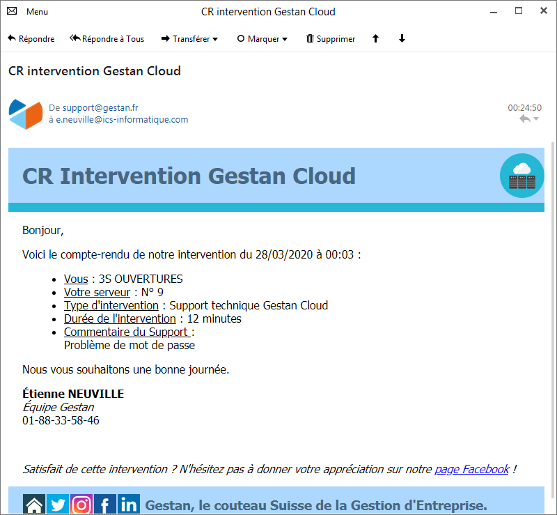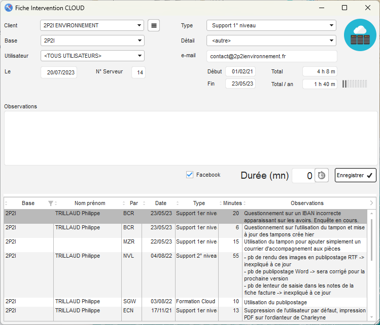 Cliquez ensuite sur Enregistrer : votre intervention est enregistrée, et un mail récapitulatif est envoyé au client.