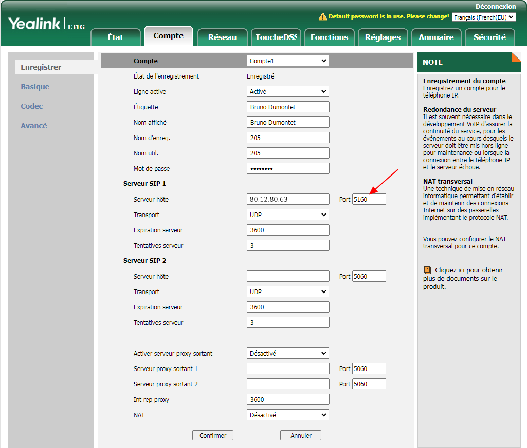- en réseau interne, il est possible d'utiliser 192.168.1.115:5160 comme proxy SIP (192.168.1.115 est l'IP du serveur ASTERISK)