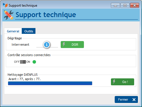 Indiquer votre trigramme d'intervenant dans la zone 1, et cliquez sur DGR.